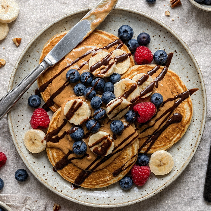 Protein Pancake Mix kan tillagas både som tunna crêpes-pannkakor och som tjocka amerikanska pannkakor. Oavsett vilket, så är smaken lika god. Pannkakorna går att avnjuta till en lyxig helgfrukost såväl som till lunch och middag. De förbereds på nolltid och det enda du behöver är vatten och lite smör (valfritt) att steka i.