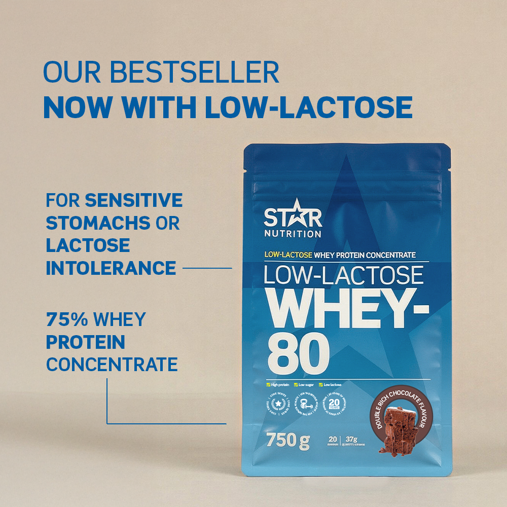 För att få ut maximalt av din träning är det viktigt att äta tillräckligt och säkerställa ett adekvat proteinintag. Protein bidrar till att öka och bibehålla muskelmassan samt till att bibehålla en normal benstomme. Med Whey-80 Low-Lactose har du alltid ett högkvalitativt protein lättillgängligt.